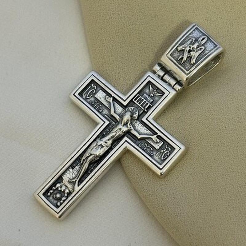 Крестик серебряный двусторонний прямой с распятием Иисуса и молитвой чернение Крупный серебряный крест с распятием и чернением 941-15-Ш -- это уникальное и духовное украшение, наполненное глубоким символизмом и красотой. Этот крест несет в себе не только эстетическую ценность, но и обладает глубоким религиозным значением. На лицевой стороне крестика изображено распятие, что делает его важным символом христианской веры. Этот момент в истории является выражением бессмертия духа и самопожертвования. Распятие символизирует любовь, жертвенность и надежду, придавая кресту глубокий религиозный смысл. На обратной стороне крестика из серебра 941-15-Шразмещена молитва, что добавляет украшению дополнительное духовное значение. Эта особая молитва может быть личным посланием, напоминанием о вере или молении за защиту. Элементы крестика, выполненные с использованием чернения, создают объемные контуры и придают украшению особый характер. К серебряному крестику можно подобрать цепочку из серебра, что делает его универсальным и подходящим для различных обстоятельств. Серебряный крестик с чернением и распятием подходит как для женщин, так и для мужчин, что делает его универсальным аксессуаром. Можно носить его как нательное украшение, чтобы держать символ близко к сердцу, или поверх одежды, что придает вашему образу особую глубину. Ухаживать за серебряным крестом 941-15-Ш очень просто, достаточно один раз в месяц промыть его в мыльной воде и просушить полотенцем. Этот серебряный массивный крест с чернением 941-15-Ш танет не только прекрасным украшением, но и мощным духовным артефактом. Он может стать особенно значимым подарком для близкого человека, символизируя заботу, защиту и веру. Сделать подарок более запоминающимся, и статусным поможет выбор стильного футляра. Помочь с выбором футляра могут наши консультанты, так же они ответят на все ваши по ювелирным изделиям. Украшение выполнено из серебра 925 пробы, что засвидетельствовано клеймом ювелирной палаты Украины. Также мы сотрудничаем по системе дропшиппинг. ************* с нами красиво
