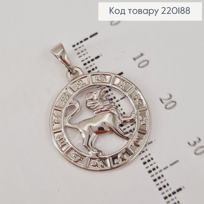 Кулон круглый серебристый рождений из медицинской стали знак зодиака лев xuping 2см