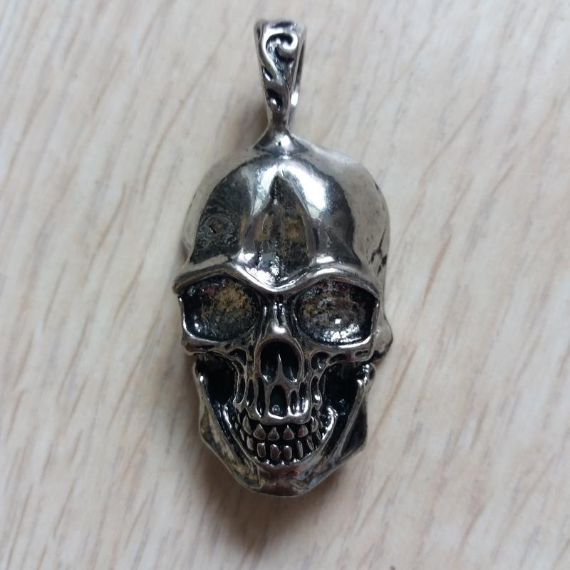 Новый кулон "Череп", серебристый металл. Длина 3,5 см ( без подкулонника ), 4,5 см общая длина ( с подкулонником ). Производитель Китай. Длина цепочки 65 см. Можно без цепочки - 290 грн.