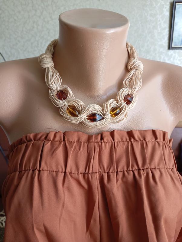 Виготовлене з бавовняного шнура та намистин. Довжина: 45 см. Ручна робота.