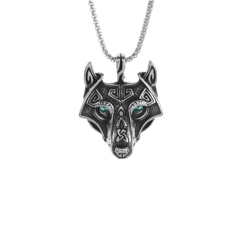 Підвіска "вовк" type w2 green з ланцюжком 55 см. срібляста