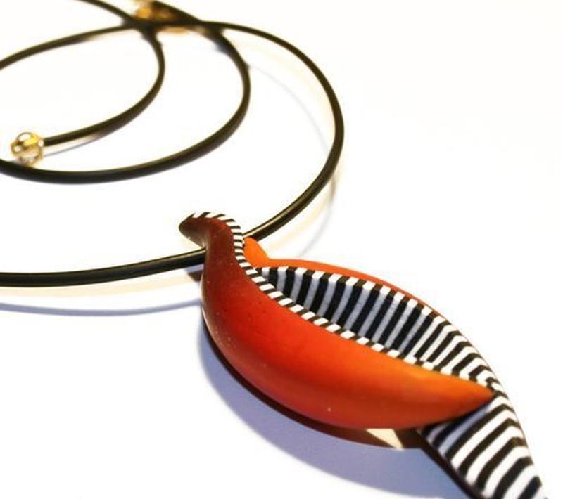 Идея украшения от дизайнера Katy Schmitt. Неординарное решение в выборе формы и цвета. Современный дизайн. Длину шнура можно выбрать под заказ. Дополнительные характеристики: Материал : Металлическая фурнитура Материал : Полимерная глина