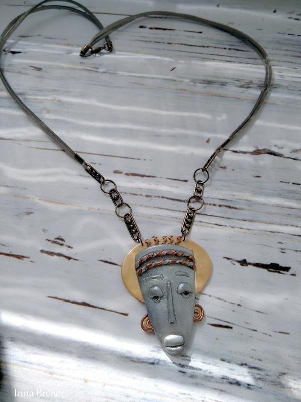 Прикраса в етно стилі, красуня з Судану в національному образі. Дуже модний дизайн, зараз все африканське в тренді. Додаткові характеристики: Матеріал: Металева фурнітура Матеріал: Полімерна глина