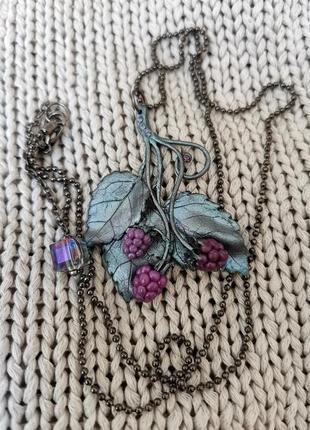 Кулон "Raspberries" Матеріали: полімерна глина, металева фурнітура, кристали Swarovski, кришталева бусина. Розміри : кулон - 4,5х4см, довжина ланцюжка - 60см, подовжується. Можливе виконання прикрас за вашим індивідуальним замовленням. Дополнительные характеристики: Материал : Бусины Материал : Металлическая фурнитура Материал : Полимерная глина Тематика : Растения