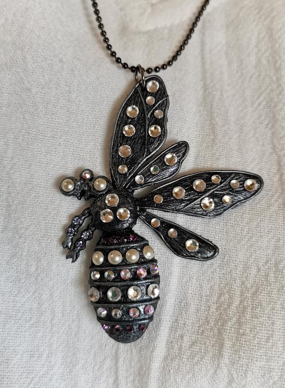 Прикраса "Silver wasp" Матеріали: полімерна глина, кристали Swarovski, скляна бусина, металева фурнітура. Розміри кулона: 6х4,5см. Застібка-карабін. Довжина ланцюжка - 60см, подовжується. Можливе виконання прикрас за вашим індивідуальним замовленням Дополнительные характеристики: Материал : Металлическая фурнитура Материал : Полимерная глина Вид изделия: Кулон Камни вставки: Кристаллы Swarovski Тематика : Бабочки/насекомые Назначение: Для женщин