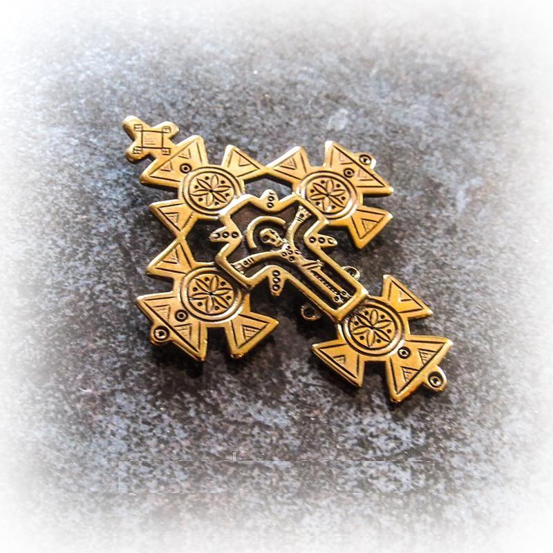 Дополнительные характеристики: Материал : Латунь Вид изделия: Кулон Цвет и оттенок: Золотистый Тематика : Религия/Крестики Назначение: Унисекс