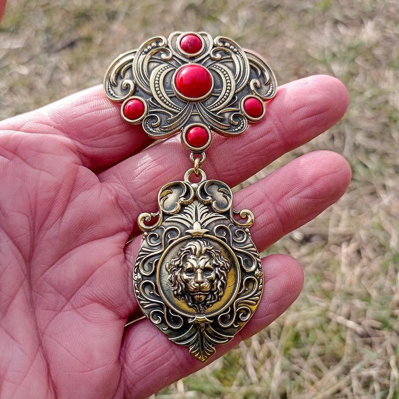Дукач ручної роботи з бантом Лев - прикраса, підвіска, елемент до намиста. Один із найстаріших та найпопулярніших символів. Уособлення сили, мужності, великодушності, символ влади, хоробрості і багатства, а також стихії сонця і вогню. Прикраса з зображенням лева допомагає людині знайти безстрашність і впевненість у собі. У геральдичних системах лев позначає розсудливість, твердість, стійкість. На його сонячний символізм вказує золотий колір. На емблематичному рівні лев - це знак відваги, сили, хоробрості, а також великодушності і милості. «Щоб звільнитися від своєї любові, треба стати левом», - так говорив Заратустра. У європейській геральдиці як фігура символізує короля або князя, протиставляється орлу — символу імператора або залежності від нього. В українській геральдиці лев в першу чергу асоціюється з символікою західноукраїнських земель, з центром в місті лева - Львові, переважно Галичини а також з руським левом Галицько-Волинського князівства. Використовувався на гербі Західно-Української народної республіки, емблемах Січових стрільців та дивізії «Галичина». Конституція України передбачає затвердження великого герба, невідємною частиною якого стане золотой лев, із золотою короною Данила Галицького. До середини XX ст. зображення лева виступало в гербах міст Львова (відомий з XIV ст., офіційно підтверджений у 1526 та 1789 рр.), Берегового (відомий з XV ст., офіційно підтверджений у 1902 р.), а також низки містечок і селищ Галичини (Буданів, Глиняни, Гримайлів, Заболотів, Нові Стрілища, Печеніжин), Буковини (Опришени), Закарпаття (Боржава, Завадка, Імстичово, Новоселиця, Фанчиково). Також верхня половина лева, яка виходить із-за фортечного муру, виступала в шляхетському гербі "Правдзіц", що також фігурував на печатках окремих містечок Галичини (Болехів, Войнилів, Жулин, Угнів). Латунь, лиття, гравірування, вставки - пресований корал, 50x90 мм, вага близько 31 г Дополнительные характеристики: Материал : Латунь Вид изделия: Кулон Вид изделия: Подвеска Вид изделия: Шармы Камни вставки: Коралл Цвет и оттенок: Золотистый Тематика : Животные Назначение: Для женщин