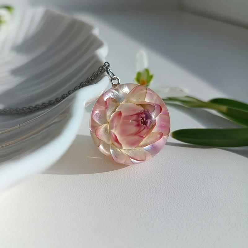 Кулон с цветком, подвеска на шею из эпоксидной смолы, украшение