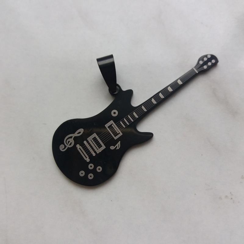 Новый кулон-подвеска "Черная гитара", черный металл, длина 5 см. Производитель Китай.