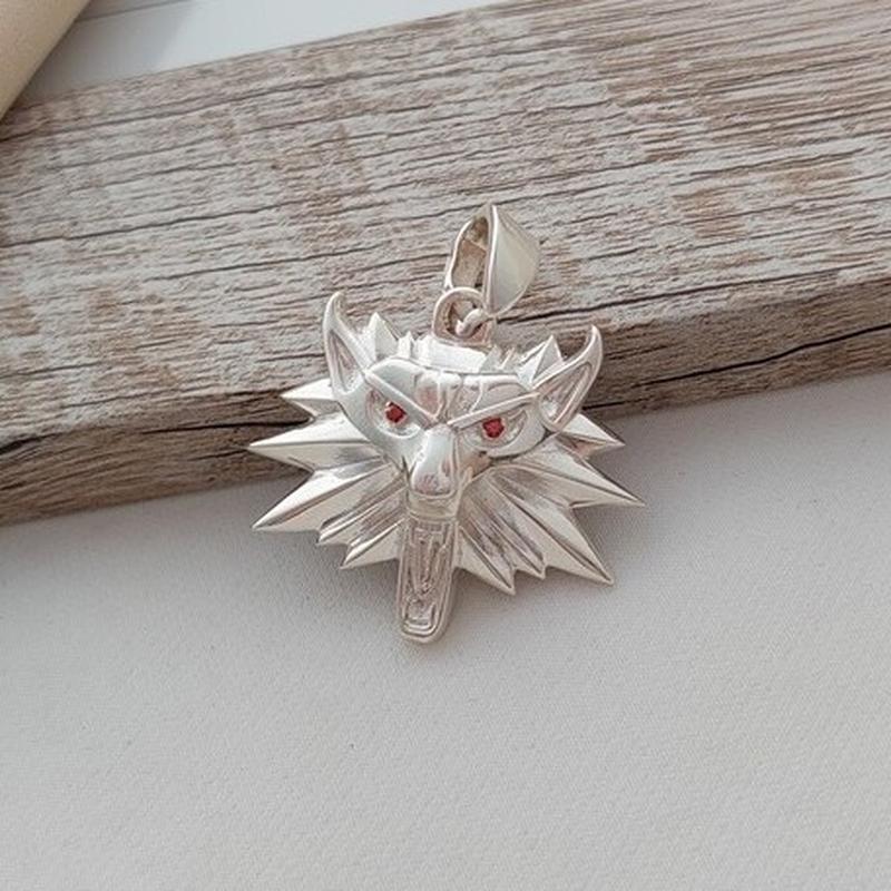 Подвеска серебряная ведьмак с красными фианитами для цепочки или шнура