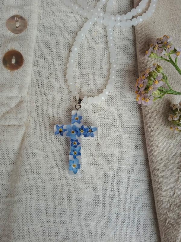 Крестовик с незабудками в смоле. Рондели хрустальные 4 мм
