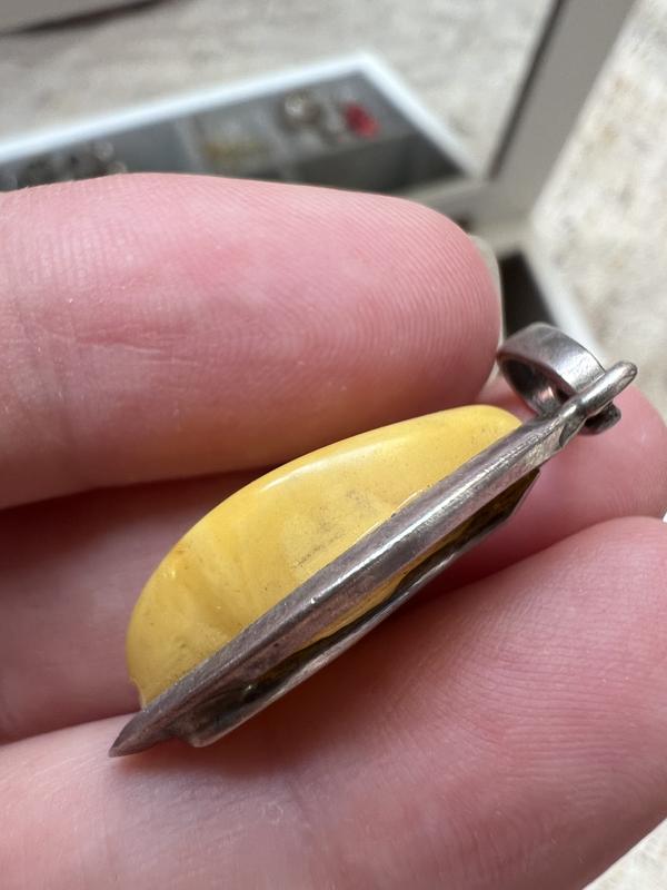 Очень похоже на серебро и янтарь но проб ни которых нет