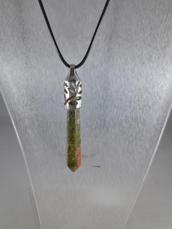 Какая же подвесочка файная. Файна потому, что натуральная. Потому что для украшения использована натуральная яшма, разновидность унакот. А металлический наверститель добавляет легкости подвеске. А самоцветы - они неповторимы, естественны. Поэтому в любом случае ни у кого такой не будет. Длина шнура - 60см. Можно надевать через голову. Длина подвески - 6.5 см