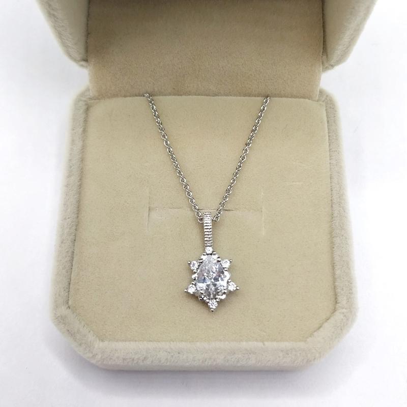 Кулон с цирконами "алмазная капля платинирование" ювелирный сплав покрытие родий в бархатн...