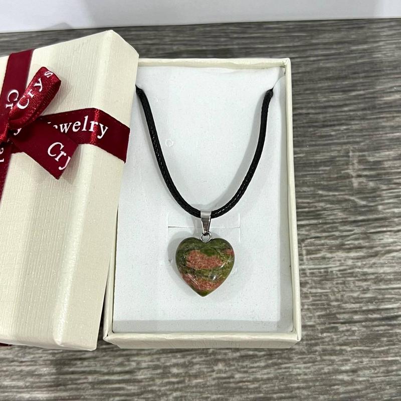 Кулон с натуральным камнем яшма в форме мини сердечка на шнурке в подарочной коробочке