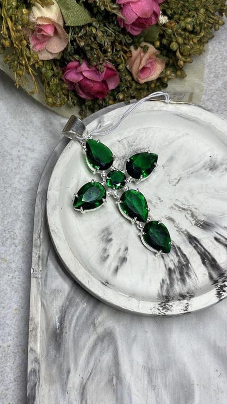 Підвісок хрест з смарагдовим кварцом хрестик кулон з кварцем в сріблі крест з каменем квар...