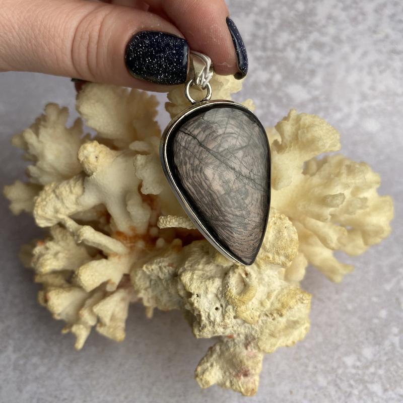 Пропонуємо Вам придбати неперевершений підвісок (кулон) з натуральним каменем гіперстен у сріблі. Виробник Індія Довжина з вушком - 54 мм., розмір каменя - 38*23 мм. Метал - Індійське срібло, покрите сріблом 925 пр*