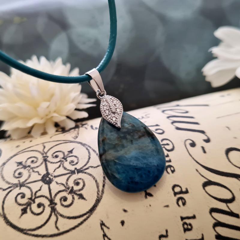 💙💎 Кулон в форме капли из натурального апатита на кожаном шнурке бирюзового цвета (воловья кожа). Фурнитура серебристого цвета. Держатель кулона с фианитами. -------------------------------------------------- - !!! В продаже есть такие же кулоны из других натуральных камней. Размер: 3х1,5 см, длина шнурка 50 см + 5 см цепочка регулировки длины. Состав: натуральный апатит, воловья кожа, бижутерный сплав.