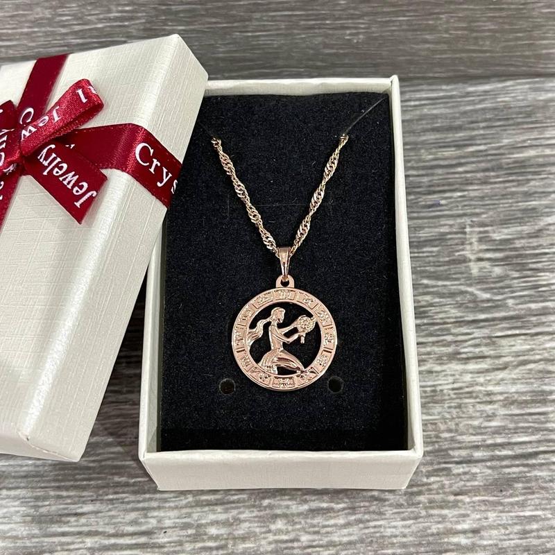 Знак зодиака "золотая дева в оправе 12 знаков" кулон ювелирный сплав в подарочной коробочк...