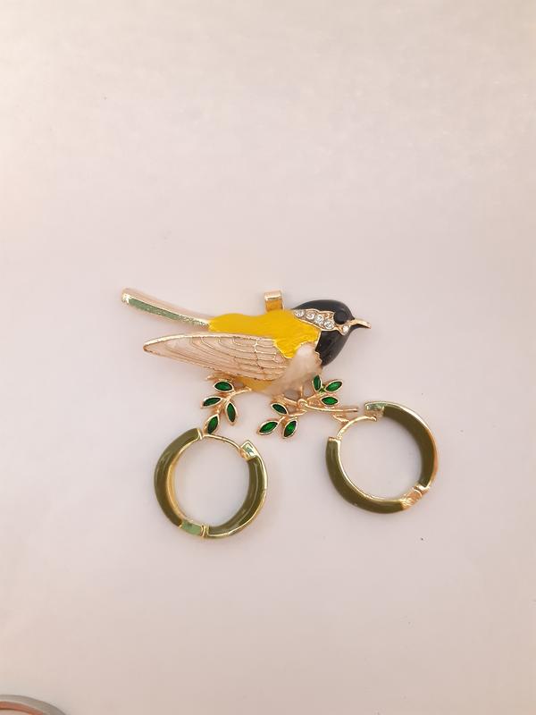 Набор сет серьги и кулон птичка эмаль стразы, синяя,кольца эмаль