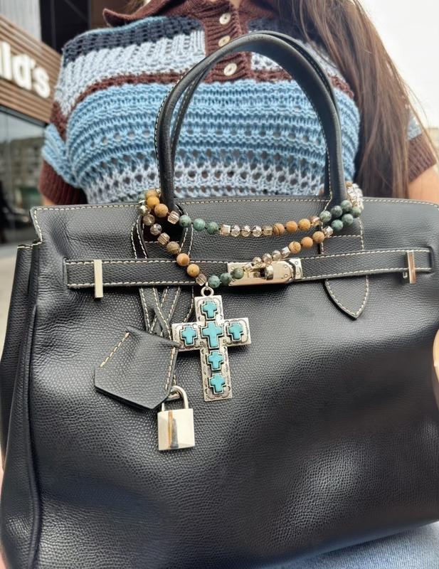 Підвіс - кольє з натурального каміння та хрестом з бірюзи💎