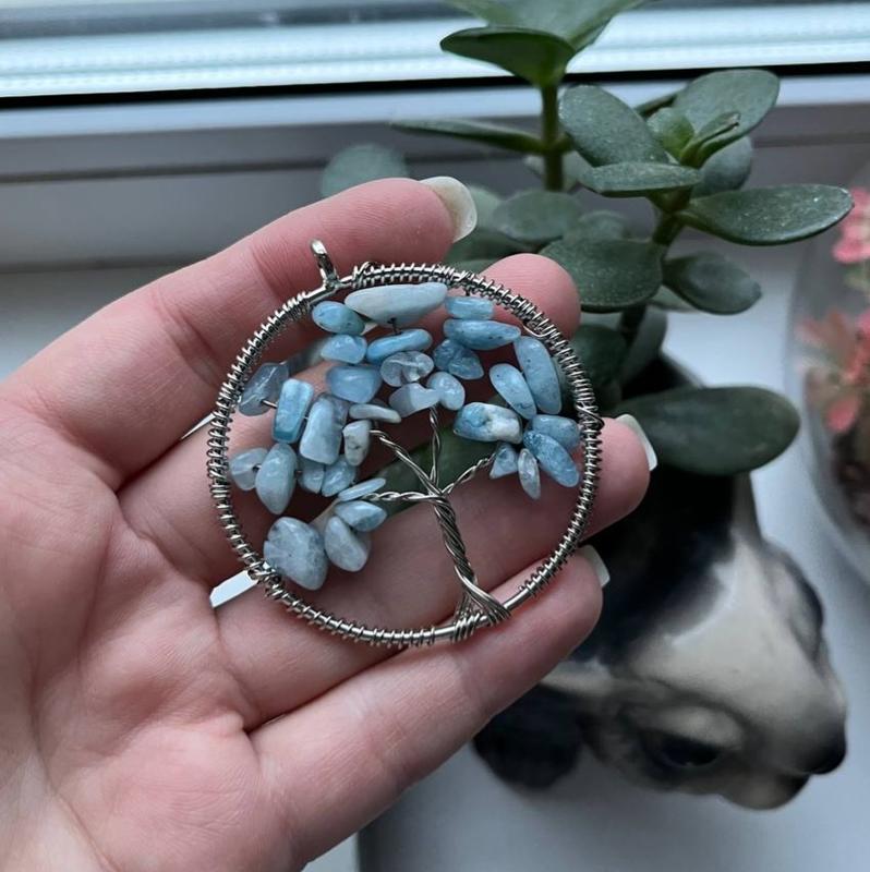 Кулон дерево с натуральным камнем аквамарин Размеры 5,5см Новый