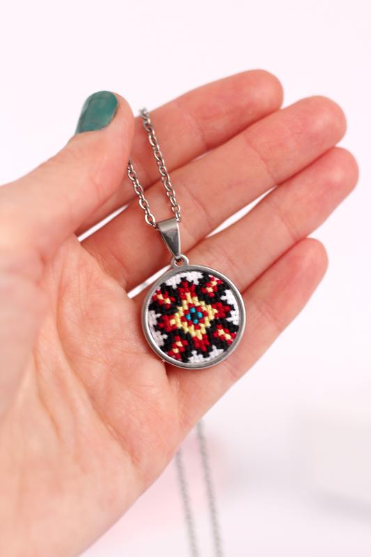 Кулоны с вышивкой от NZEE в ярких цветах и сочетаниях придают еще один великолепный вид традиционной украинской вышивке! И благодаря этому наши вышитые кулоны можно носить в повседневной жизни, и именно к этому мы призываем наших клиентов, чтобы украинская вышивка стала популярной во всем мире! Кулон с вышивкой идеально дополнит ваш стиль и станет уникальным подарком для вашей девушки, мамы, дочери, бабушки, сестры, невесты, друзей, родственников и коллег. ХАРАКТЕРИСТИКА - основа 2.0см - гипоаллергенная сталь - длина цепочки 50см + 5см удлинитель - нити мулине - бавовна ПОШТА Кулон вы получите в тешью бумаге в подарочной коробке. В посылке также будет подарочная открытка для Ваших заметок! ИНСТРУКЦИЯ ПО УХОДУ Храните в чистом и сухом месте. Использование масел, кремов, духов и т.д. может повлиять на продолжительность жизни. Обратите внимание, что это предметы ручной работы, по сравнению с изображениями могут наблюдаться незначительные различия. В процессе оформления заказа обязательно уточняйте все принципиальное для Вас свойства и характеристики заказывающего товара. Мы с радостью ответим на все ваши вопросы! Будьте уникальными! Цените традиции!