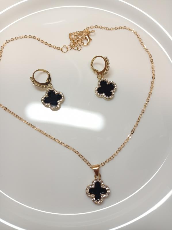 Набор четырехлистник Подвеска:270 Серьги:290 Цвет: золотой Материал: ювелирный сплав Цвет: черный