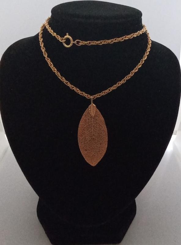 Женский кулон лист на цепочке. Украшения выполнены из ювелирного сплава золотого цвета. Длина цепочки 58 см, длина подвеса 5 см. Замок шпингельный.