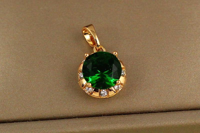 диаметр 11 мм Кулон Xuping Jewelry зелений камінь у оправі з білих фіанітів 11 мм золотистий