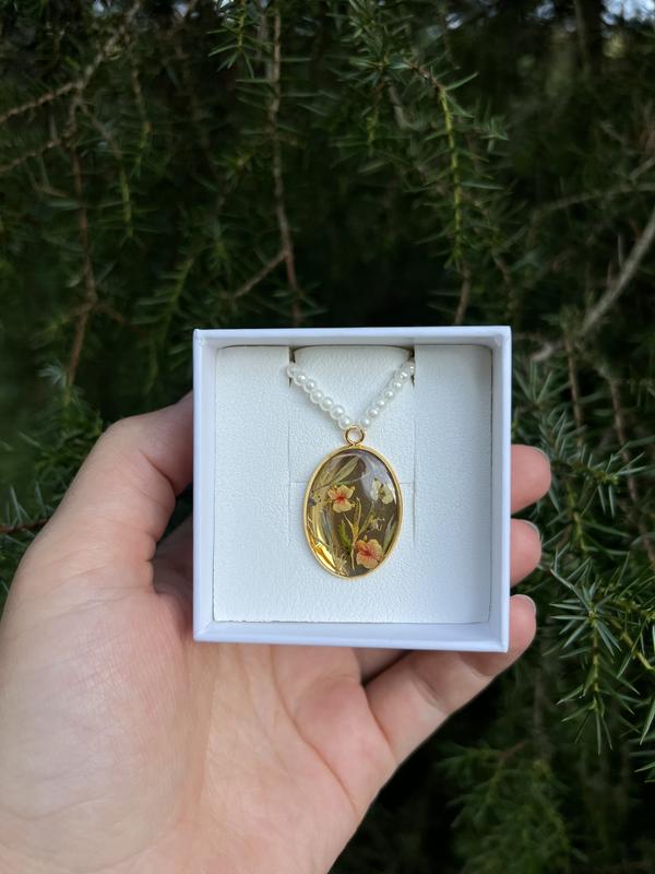 Кулон з епоксидної смоли, всередині сухоцвіти