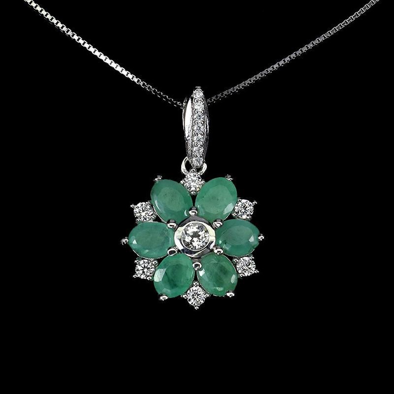 Серебряный кулон с натуральными изумрудами, белыми топазами и фианитами