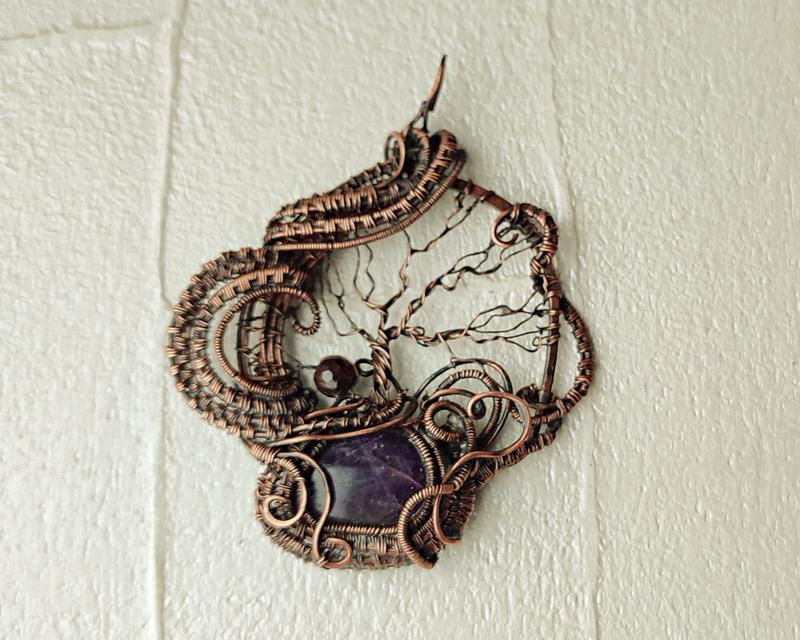 Медная подвеска-ображающая"дерево жизни" с аметистом и гранатом.