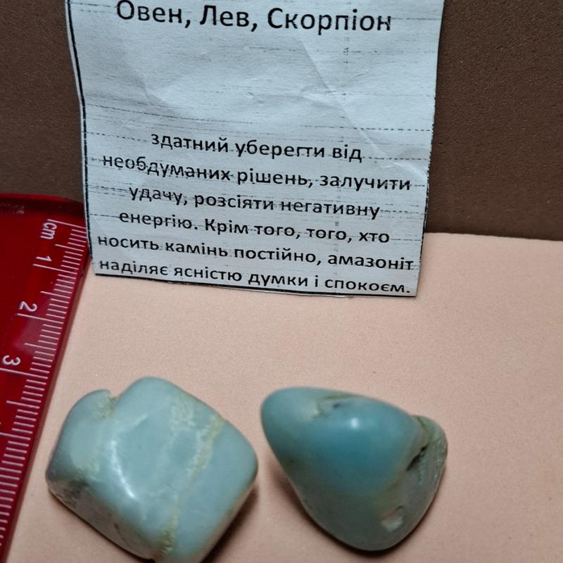 Амазонит (натуральный камень) Полированный природный амазонит нежного мятно-бирюзового оттенка. Считается камнем ясности мыслей и внутреннего спокойствия. Ему приписывают способность защищать от заслуженных решений, привлекать удачу и нейтрализовать негативную энергию. Рекомендован для Овна, Льва и Скорпиона. Цена за один 180 грн.