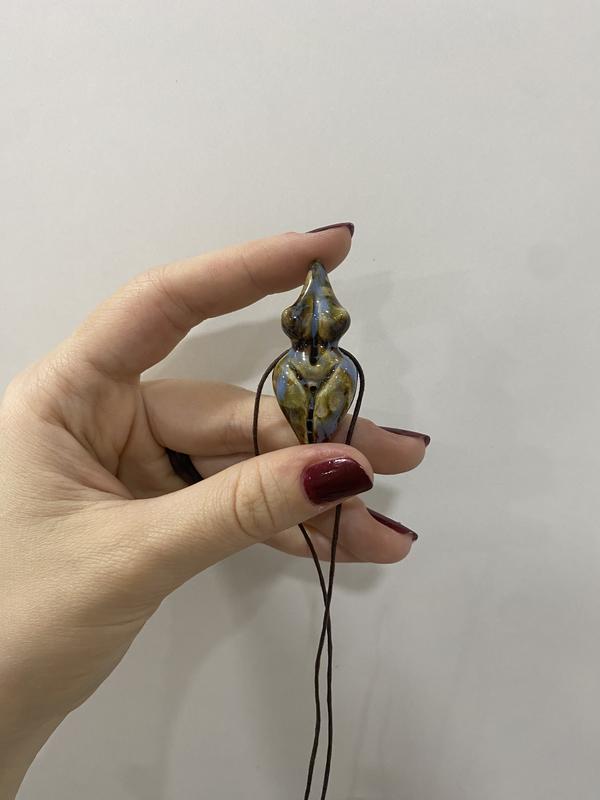 Керамічна підвіска ручної роботи від майстрині Кориці Гасіковської. Дуже гарна, на шнурку. Унікальна прикраса. Стан ідеальний, не носила, купувала на виставці за 1500 грн, віддам дешевше. Торгу немає, не знецінюватиму працю майстрині:)