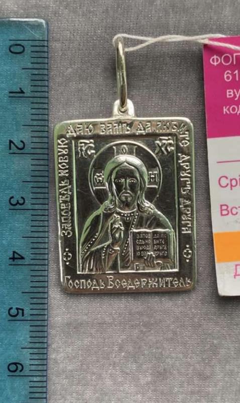 Срібна ладанка 925 проби Господь Вседержитель каадратної форми, вага виробу 8,58 грам.