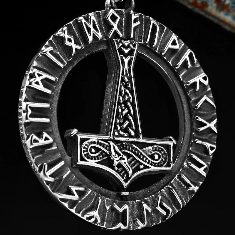 Ретро ожерелье с кулоном в виде молота с викингскими рунами