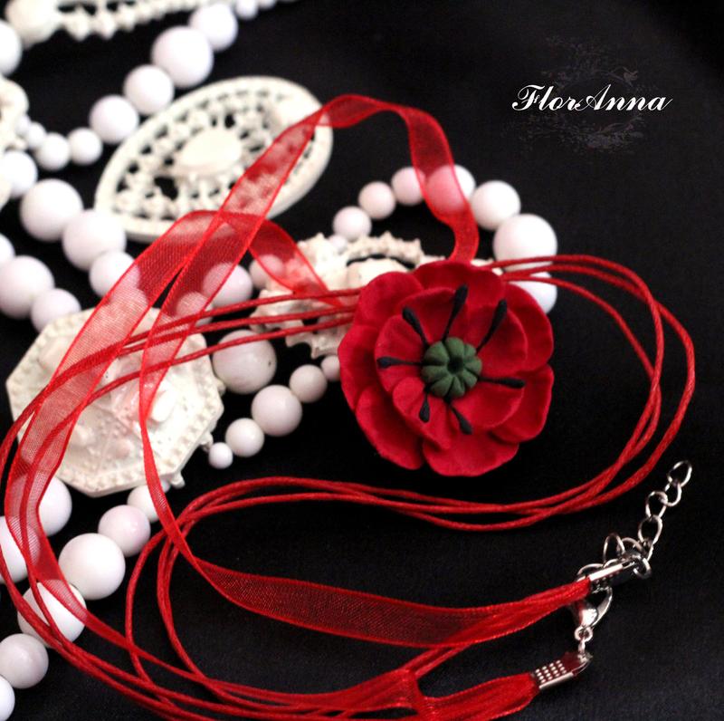 Оригинальный красный мак добавит Ваш образ нотку романтичности. Каждый лепесточек слеплен вручную из очень легкой полимерной глины. Возможен - Серьги -браслет - комплект -ободок