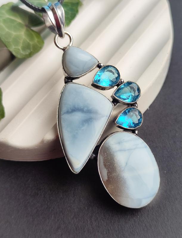 Підвісок опал овайхі та топаз. підвіс з опалу овал крапля. блакитний опал кулон. індія.