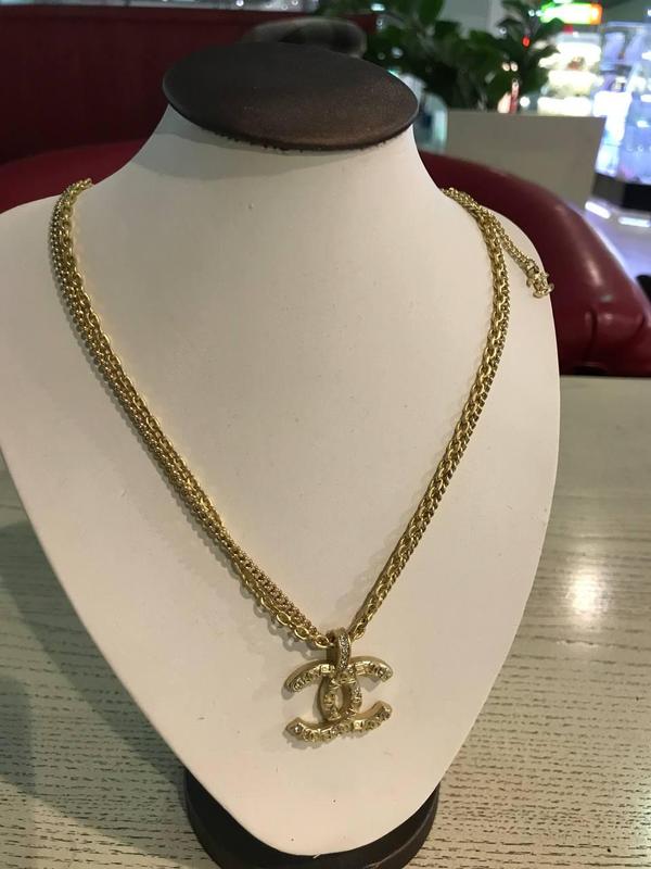 Подвеска шанель позолота с подвеской логотипом / позолоченная подвеска, колье