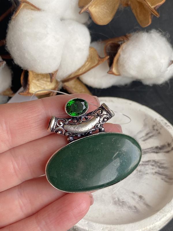Нефрит та кварц смарагдовий підвіс кулон овал із нефритом кулон із каменем натуральний неф...