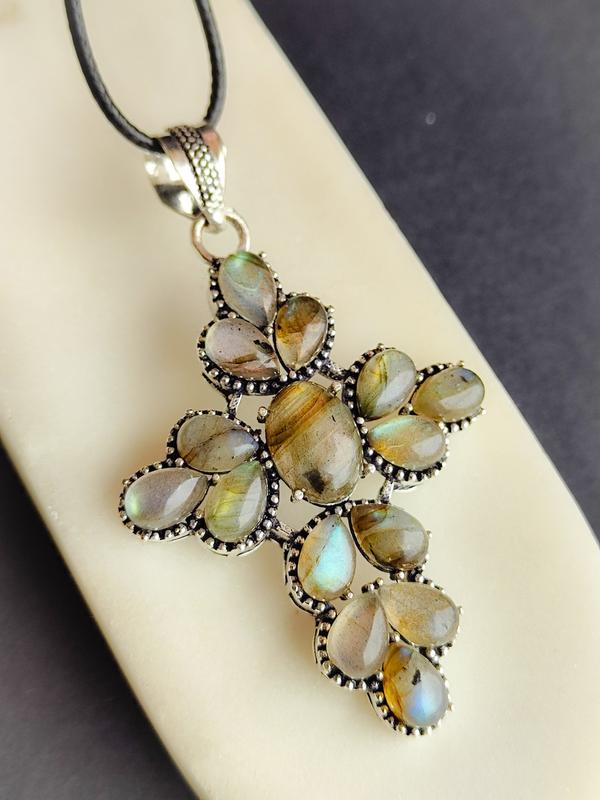 Підвіс хрест з натурального лабрадору. підвісок лабрадор. кулон крест натуральний лабрадор...