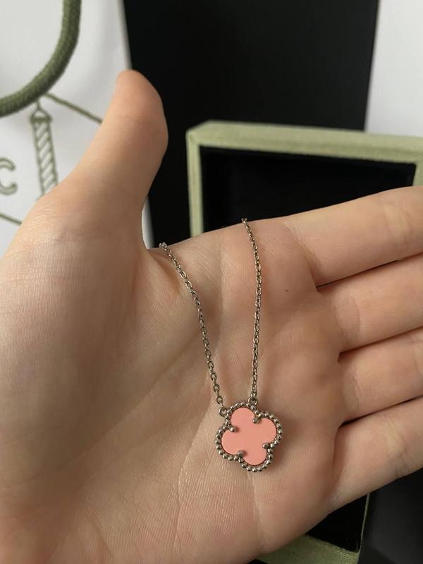 Серебряная брендовая цепочка с розовым клевером, люкс качество!