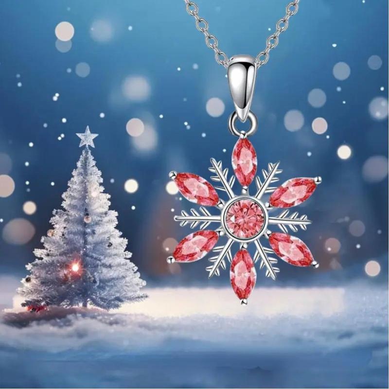 Подвеска кулон на цепи новогодняя снежинка красная, 1837