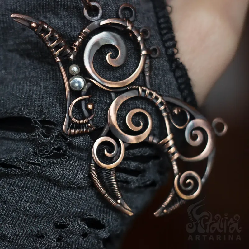 Медный кулон единорог - Материал: медь - Размер: 50x60мм - Рекомендации по уходу: Избегать контакта с бытовой химией и агрессивной химической средой ( снимать украшение при окрашивании волос и т.д.) - Автор: Ирина Выполнен в технике плетения из проволоки Wire wrap. Патинирован (состарен), отполирован. Шнур с застежкой в комплекте Украшения отправляются из города Харьков (Украина) в течение 1-2 дней после заказа (включая субботу). Все изделия отправляются в подарочной коробочке. Упаковка надежная.