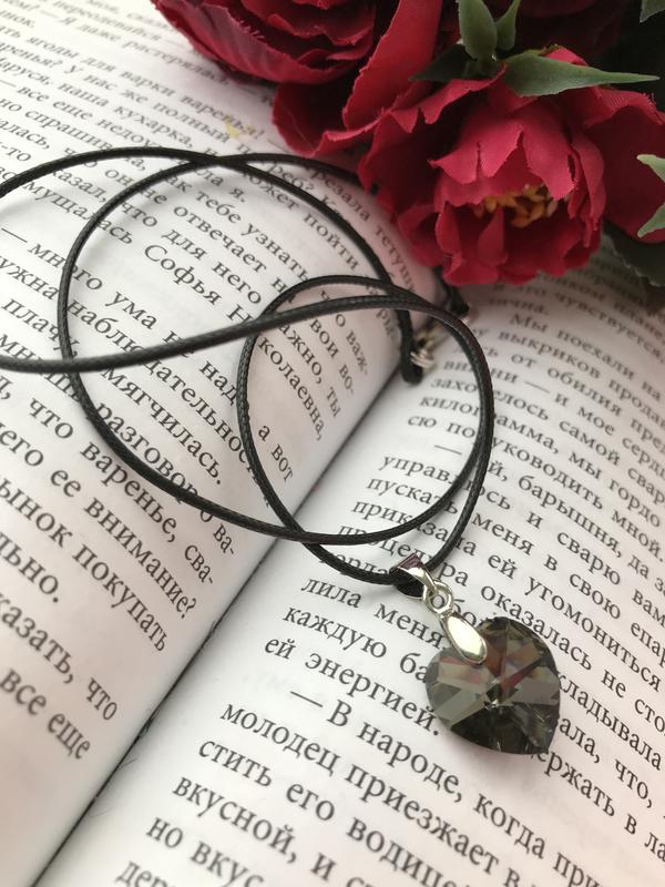 Подвеска сердечко из чешского стекла 14 мм на вощеном шнуре