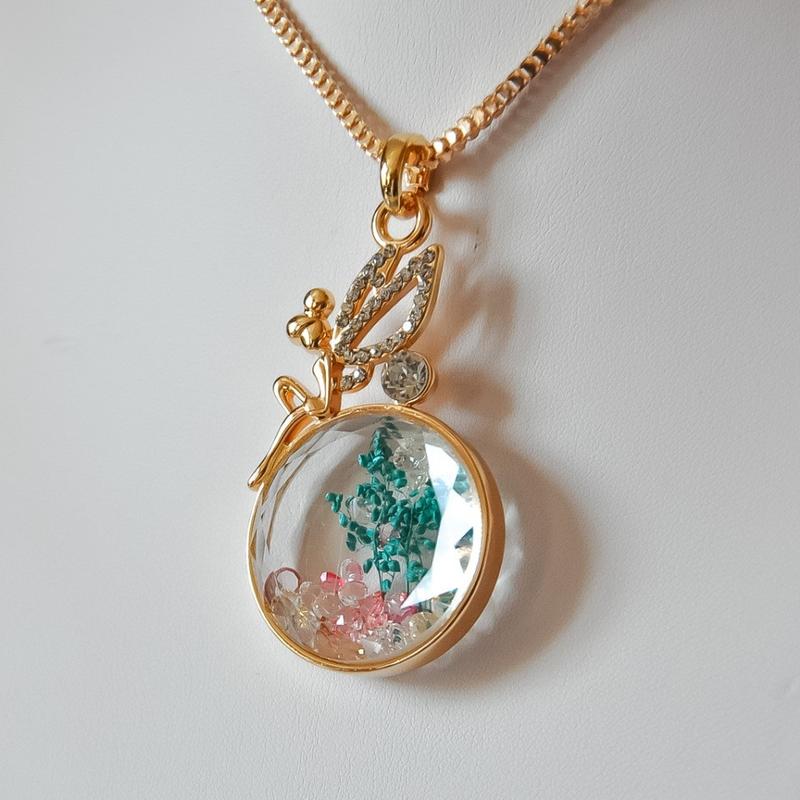 Подвеска Эльфийка с пересыпающимися кристаллами на длинной цепочке L-75 см d-63х33мм