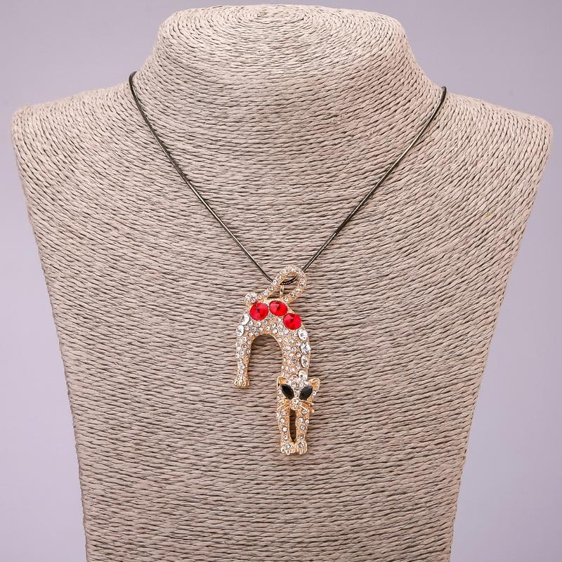 Подвеска "Кошка" с кристаллами на длинной цепочке d-31х65мм L-70см