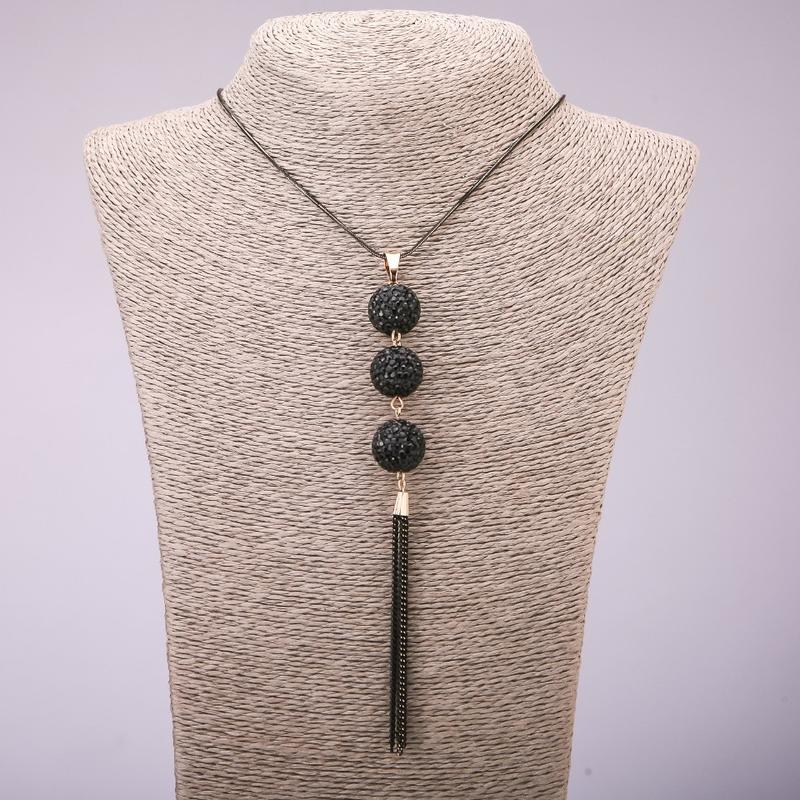 Подвеска "Трио" с черными стразами на длинной цепочке d-16х155мм L-70см