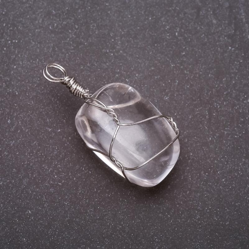 Кулон из натурального камня галтовка Хрусталь в оплетке 20х20мм(+-)